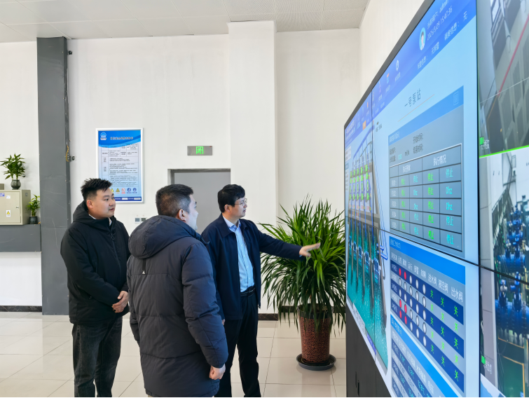 在一號泵站調(diào)度中心,通過數(shù)字孿生平臺的實時演示,全面了解項目智能化管理系統(tǒng)的運行模式和數(shù)據(jù)應用效果。魏長學肯定了平臺在優(yōu)化調(diào)度、應急響應等方面的功能,并要求進一步強化技術(shù)賦能,提升水務管理的精細化水平。隨后,在二號泵站現(xiàn)場查看主道路施工進展,詳細詢問道路施工的工期節(jié)點與難點及施工進度情況,要求工作人員加強監(jiān)督與管理,在確保安全和質(zhì)量的前提下,加快推進配套工程建設(shè)。最后來到三號泵站,查看了水泵機組及配套設(shè)備維護情況,檢查了廠房土建防漏防潮措施,提出要加強巡查及日常點檢,確保泵站各項工作安全進行。