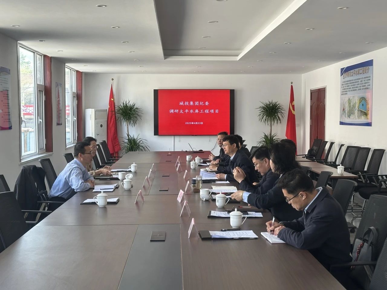 ? ? ??4月23日,濟南城投集團黨委委員、紀委書記、監(jiān)察專員李凱,紀委副書記陳朝暉一行到濟南市太平水庫工程圍繞深入貫徹中央八項規(guī)定精神學習教育、黨風廉政建設開展情況進行調(diào)研,深入了解工程建設情況,同時對工程建設招標投標領(lǐng)域突出問題進行檢查。清源水務集團領(lǐng)導班子及相關(guān)部室負責人陪同調(diào)研。
