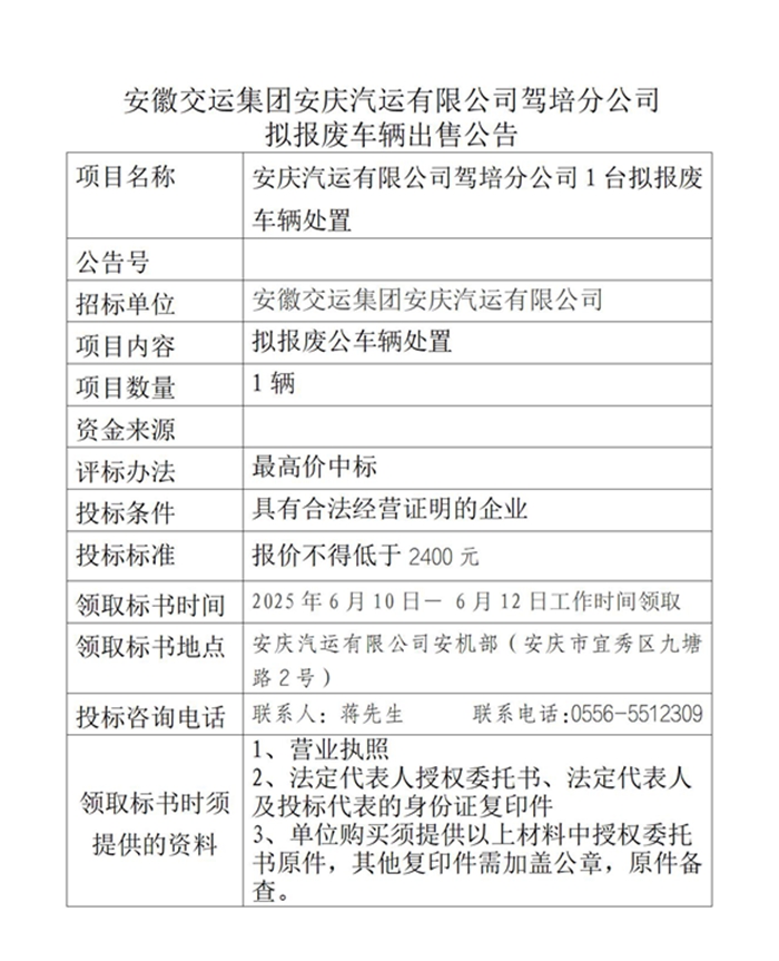 駕培分公司擬報廢車輛出售公告