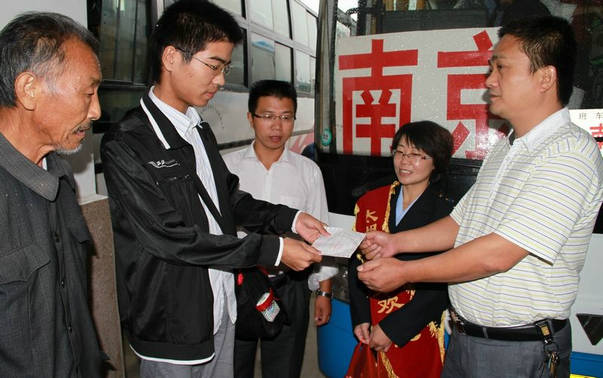 太湖分公司領(lǐng)導(dǎo)得知姐弟倆的情況后,隨即與考生所在鄉(xiāng)村取得聯(lián)系。決定從公司緊張的辦公經(jīng)費(fèi)中解決姐弟倆大學(xué)期間的路費(fèi)。9月10日是弟弟陳先義報(bào)道的日子,太湖分公司領(lǐng)導(dǎo)曹全龍同志代表太湖分公司全體汽運(yùn)人親手將兩張?zhí)聊暇┑能嚻彼偷疥愊攘x同學(xué)手中,并鼓勵他們樹立信心,正確面對暫時的困難,好好學(xué)習(xí),以過硬的本領(lǐng)回報(bào)社會。受助大學(xué)生陳先義對太湖分公司的無償援助表達(dá)了感激之情。